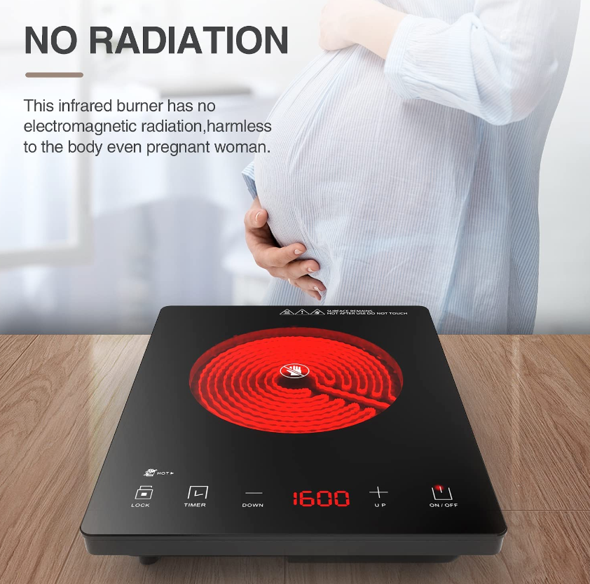 4. Applicable to different cookware--1600W power infrared burner.All cookware can be directly applied,the most important thing is to work without open fire and lampblack to give you a clean cooking environment