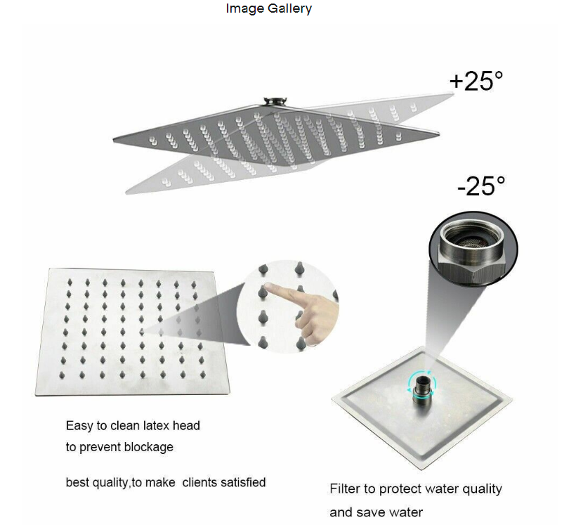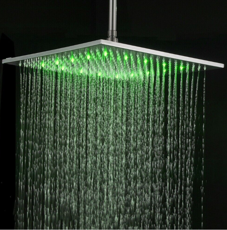 16inch LED Shower Head Wall/ceiling Mount Rain Square Top Sprayer Brushed Nickel