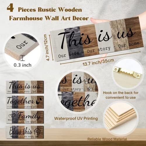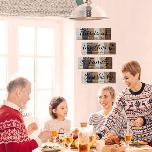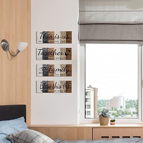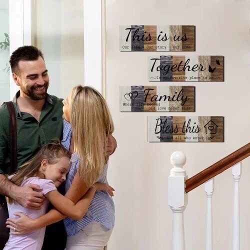 4 Pcs Home Wall Decor Signs This is Us Wall Art Bless This Home Family Sign F...