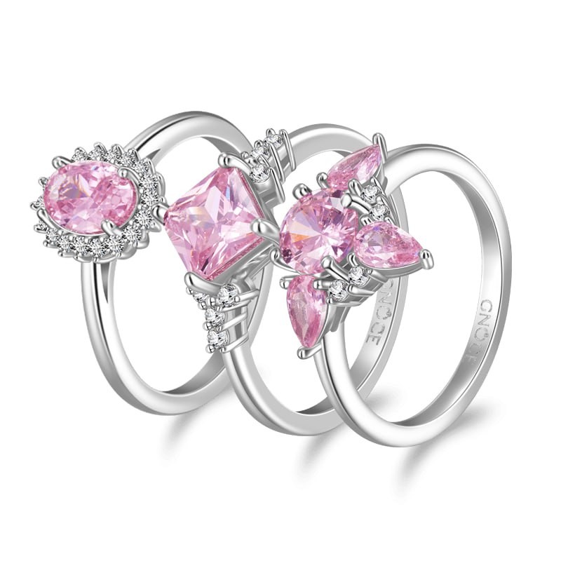 Gino Poetry Infinite Sparkle Triple Pink Stacked Ring Set
