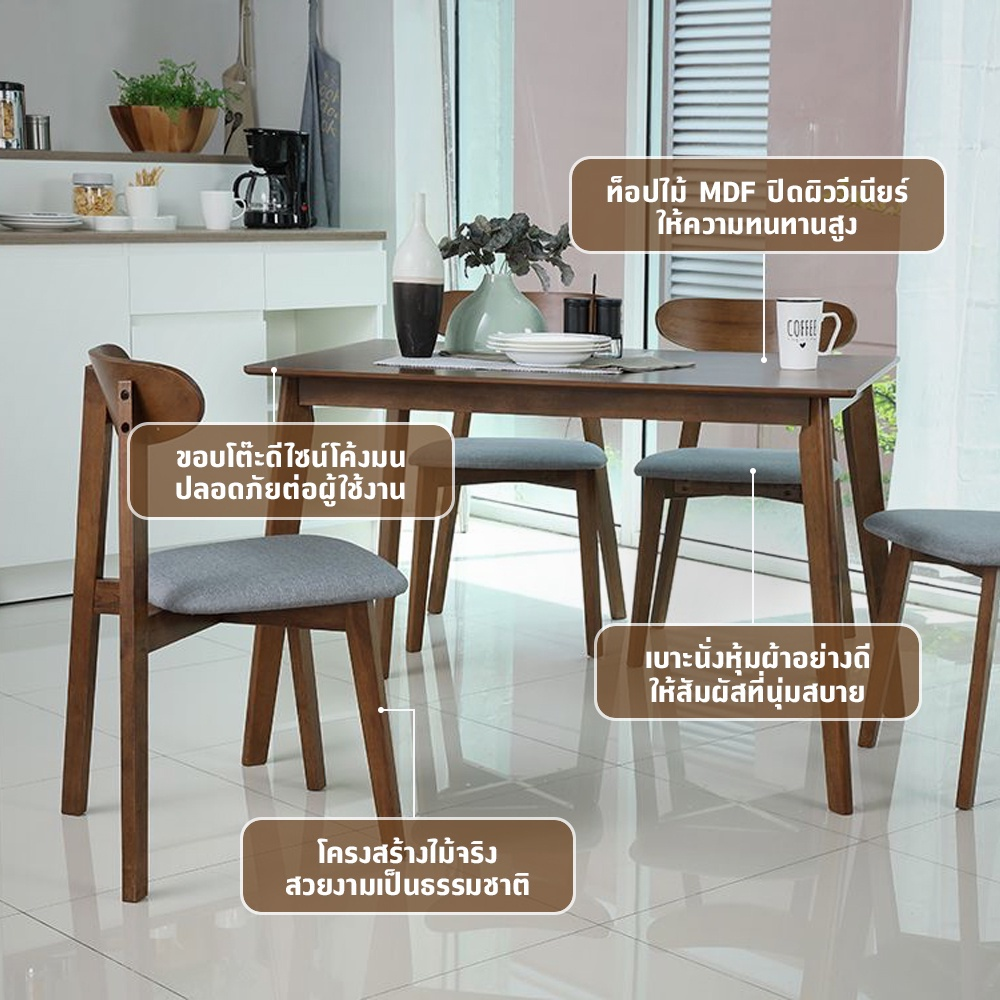INDEX LIVING MALL ชุดโต๊ะอาหาร รุ่นมิเชลล์ (โต๊ะ 1 ตัว + เก้าอี้ 4 ตัว) - สีวอลนัท/เทา