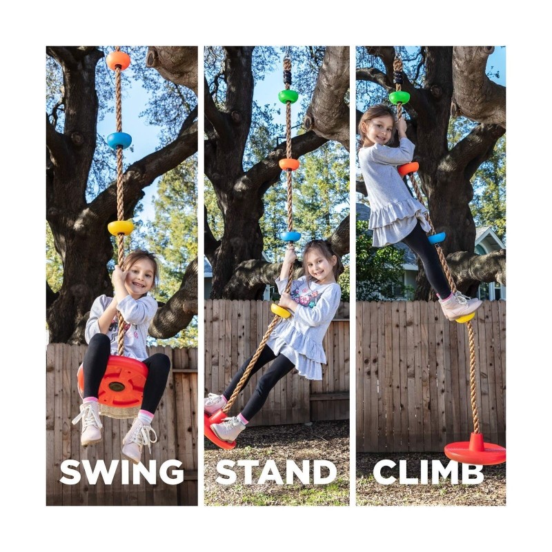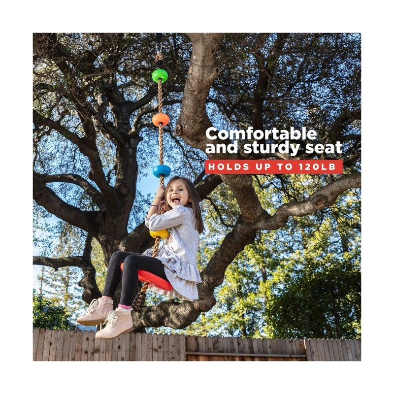 LAEGENDARY Tree Swing for Kids - Single Disk Outdoor Climbing Rope w/Platform...