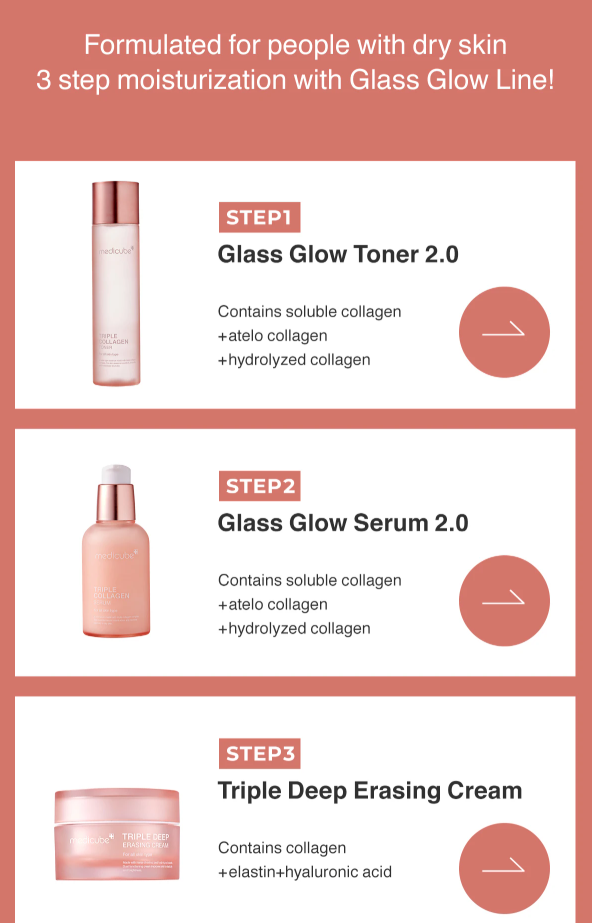 • This set comes with our best selling, dual textured Zero Pore Pads, 1000x collagen infused Glass Glow Toner 2.0, Glass Glow Serum 2.0 and the crowd favorite, Triple Deep Erasing Cream!