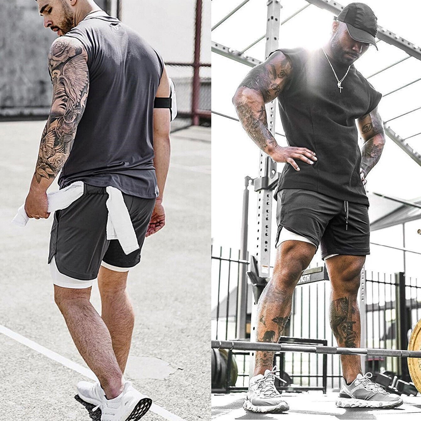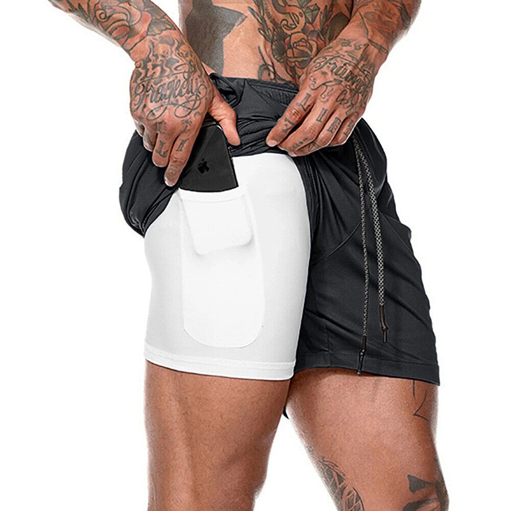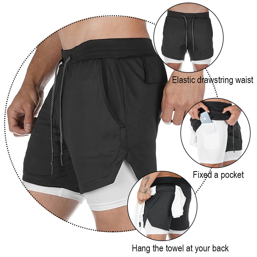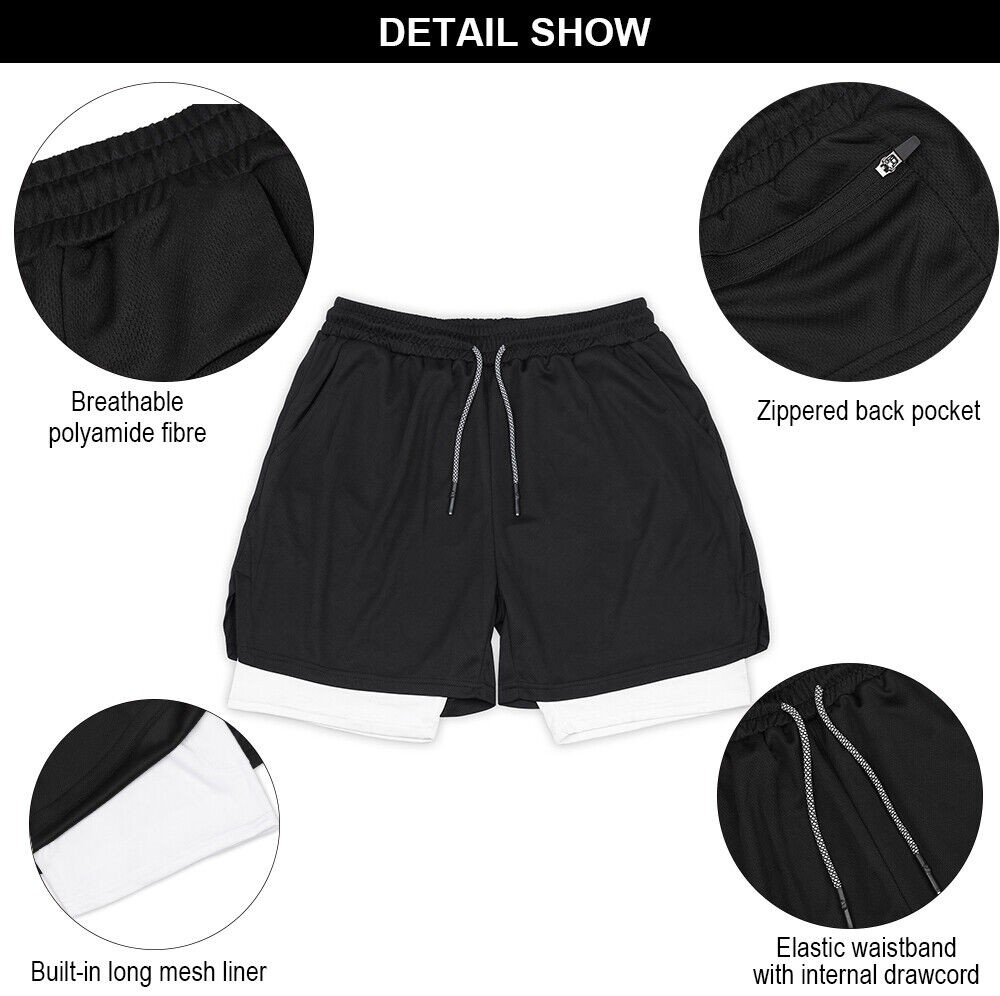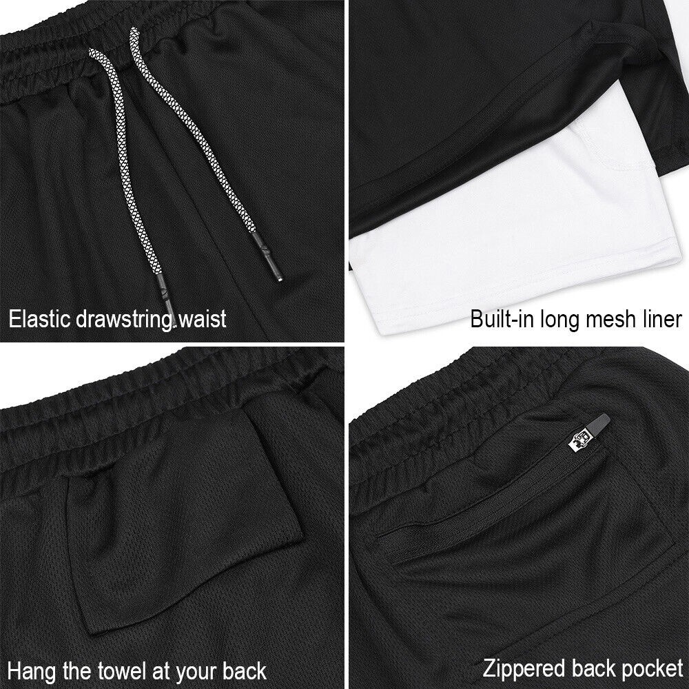 Men 2 in 1 Gym Running Shorts 7 inch Athleti Pants Quick-Dry Shorts with Pockets