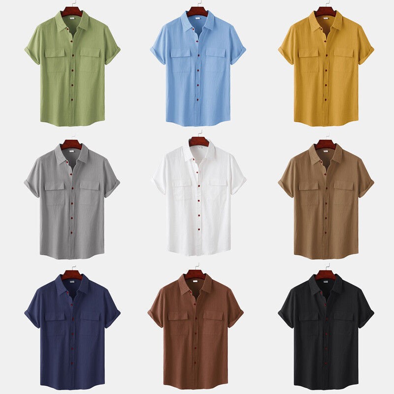 Men's Casual Button Down Shirts Short Sleeve Beach Linen Cotton Summer Shirt ❀