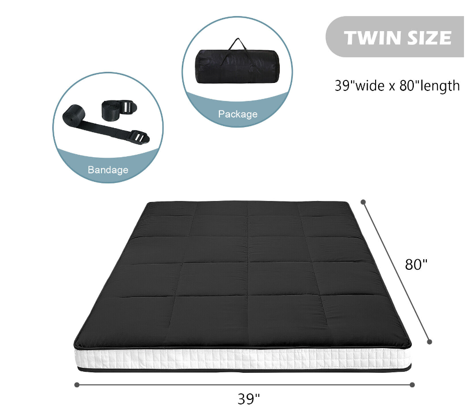 ▶ 【WIDE VERSATILITY】:It can be used as Bedroom Futon/Living Room Futon/Tatami Mat/Floor Mattress/Sleeping Floor mat/Tent Mat/Guest Mattress/Japanese Bed Mat, also can be kids play mat/floor pillow bed, also bring it with you in your car when going to anywhere, it is a good accompany for your family, Just Enjoy Your Leisure Time with Japanese Floor Mattress.