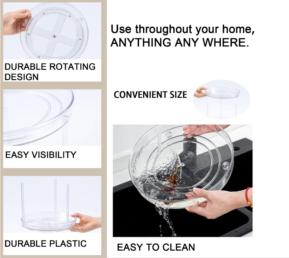 • Use this multipurpose lazy susan turntable as your spice holder, seasoning organizer, medicine/pill cabinet rack or even perfume organizer and Makeup Organizer Cosmetic Storage.