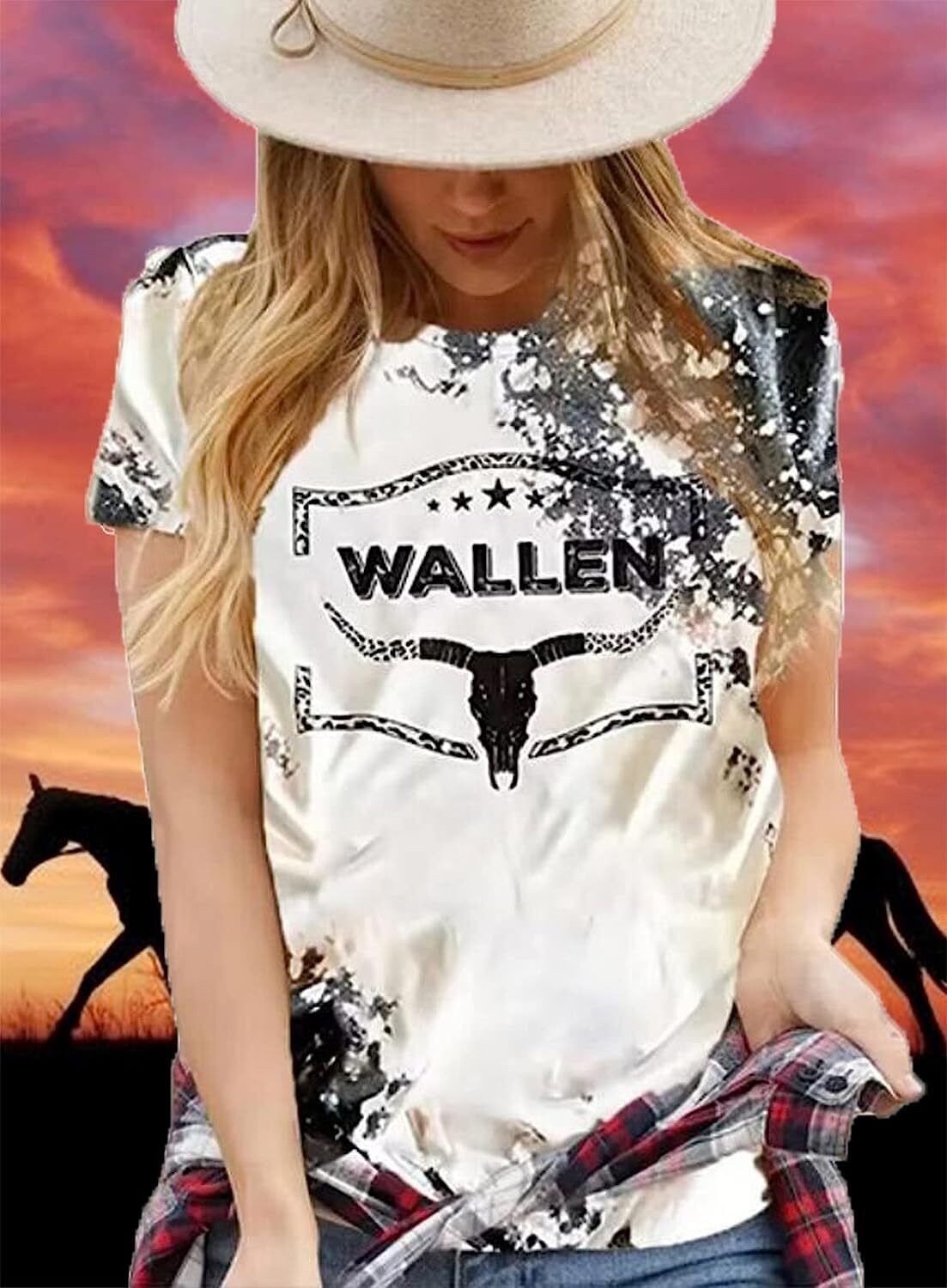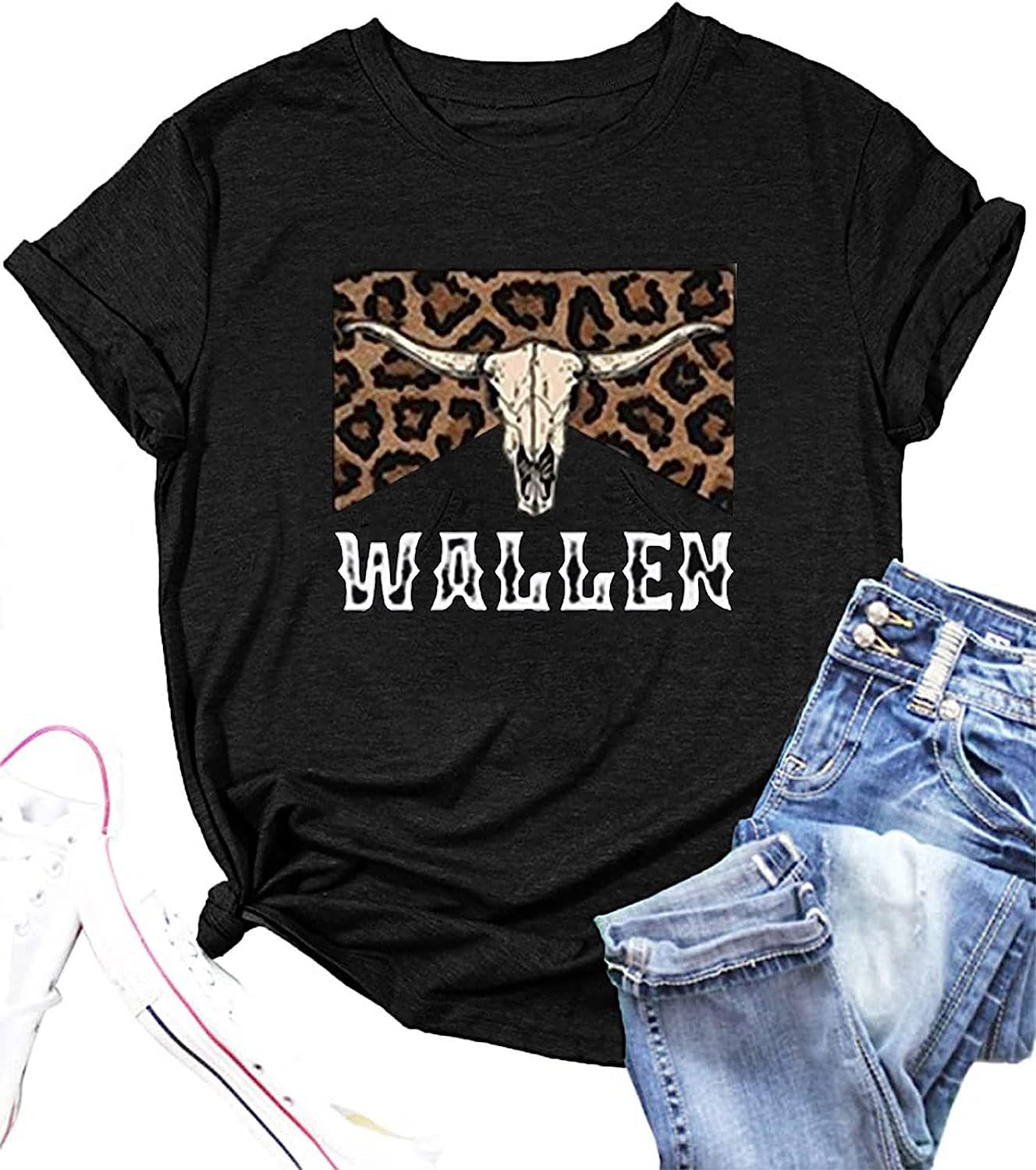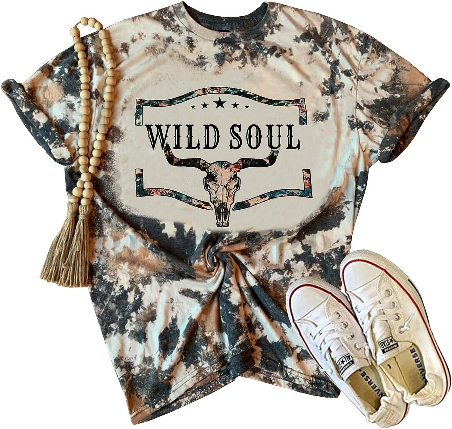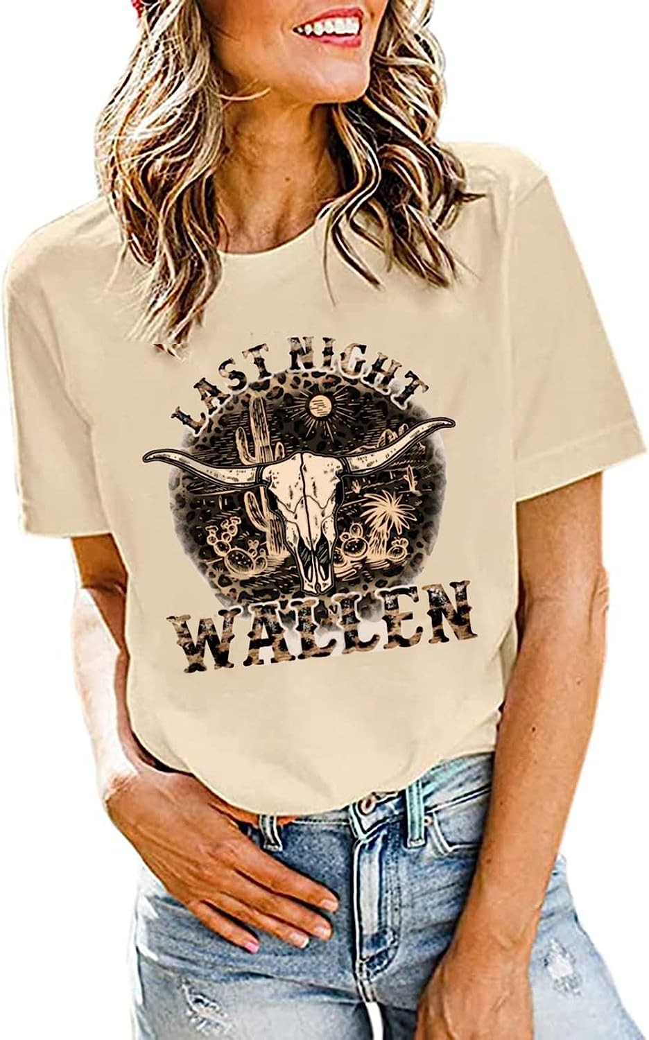 Retro Steer Skull Western T-Shirt Women Vintage Country Music Shirt Cute Cowgirl