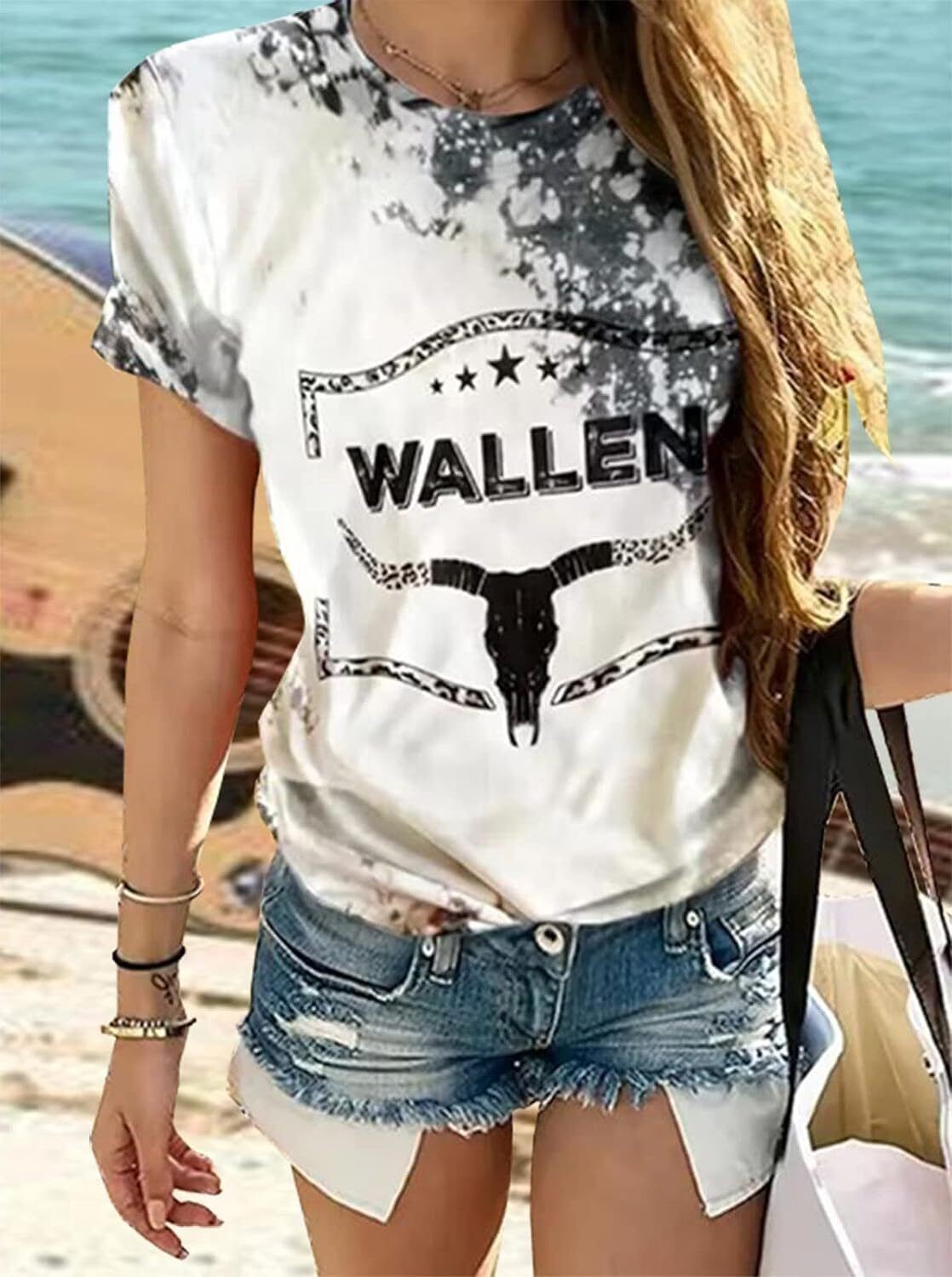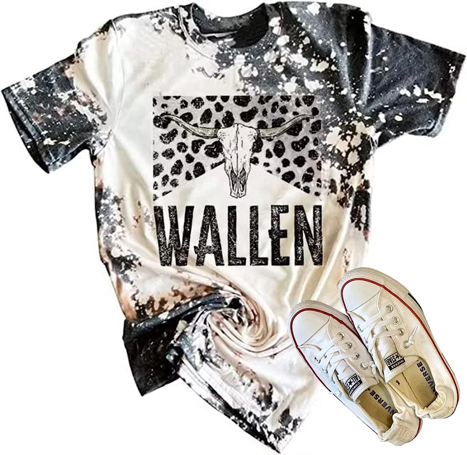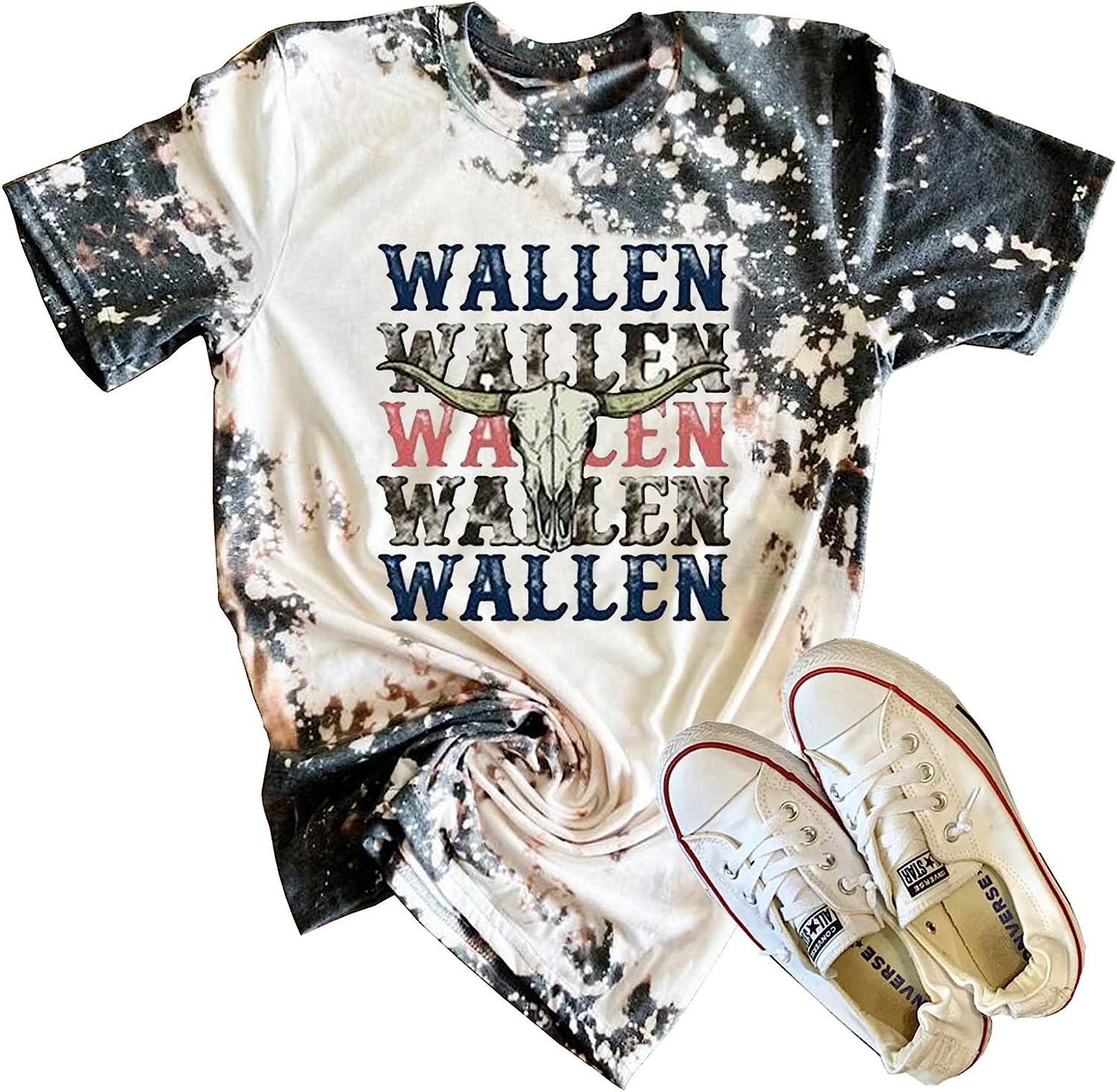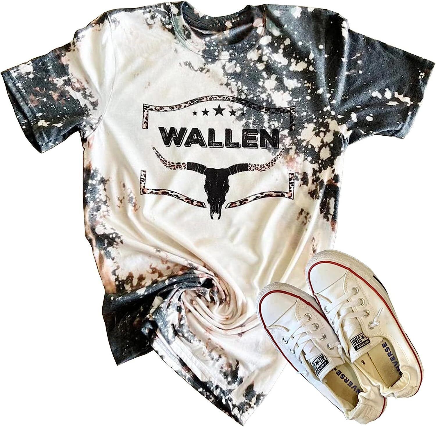 Retro Steer Skull Western T-Shirt Women Vintage Country Music Shirt Cute Cowgirl