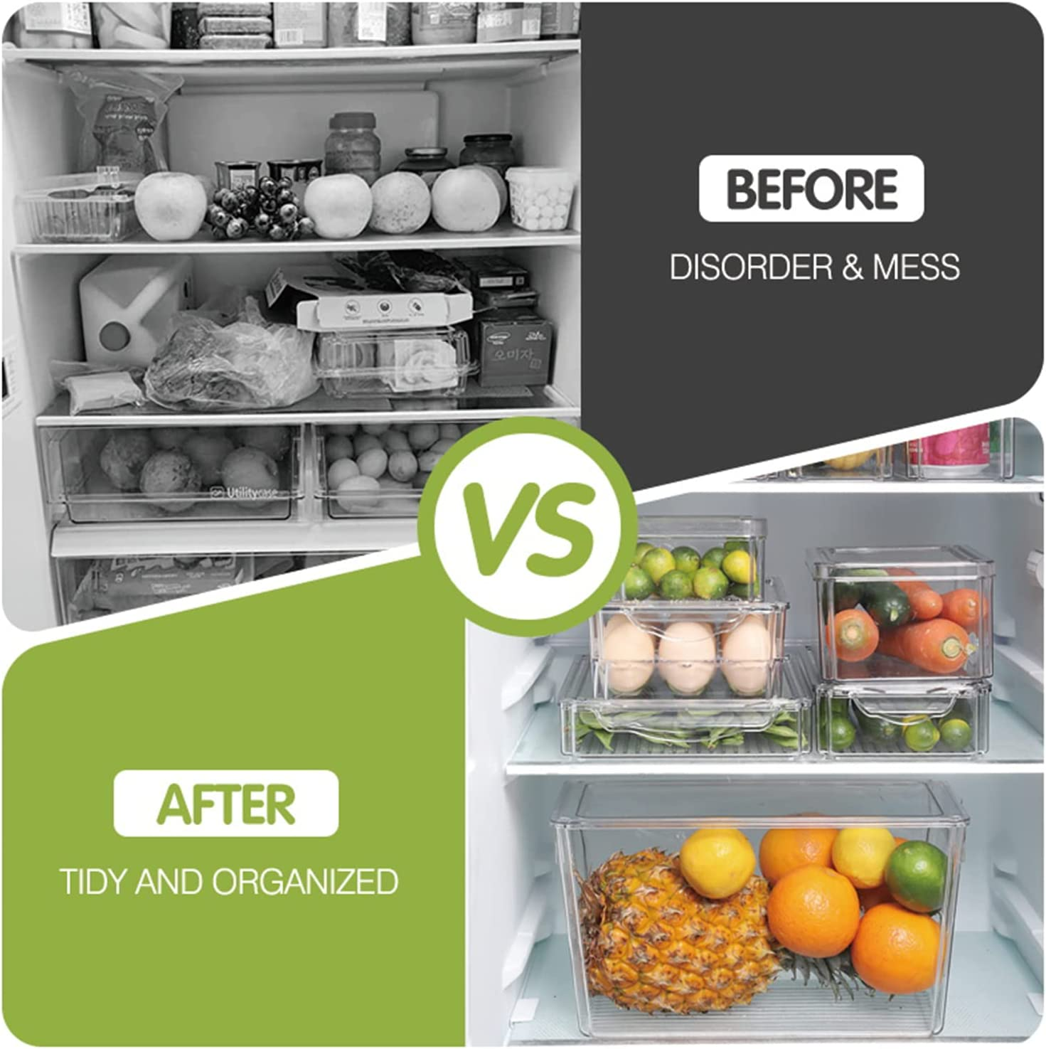 Set of 10 Refrigerator Organizer Bins Stackable with Lids, Fridge Organizers and