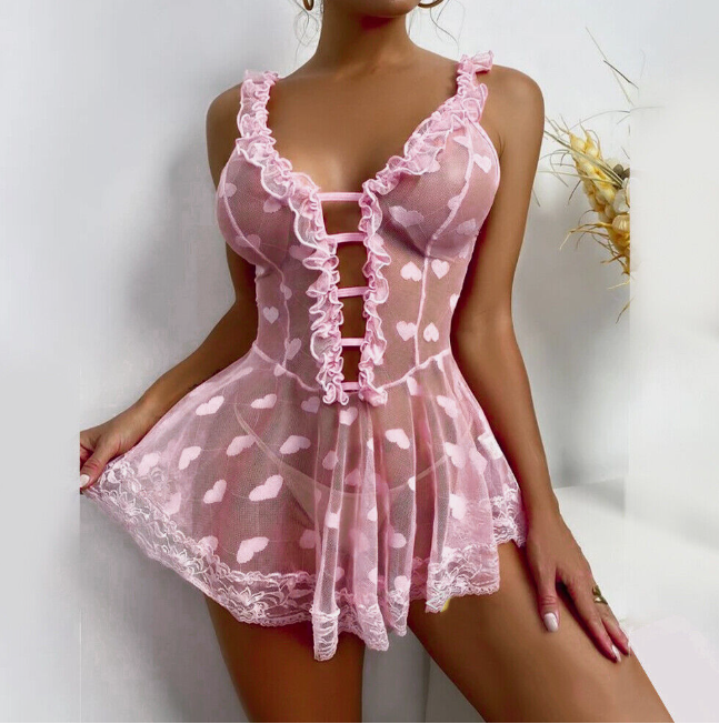 Sexy Women Mesh Sheer Lingerie See-through Nightdress Babydoll Sleepwear Pajamas