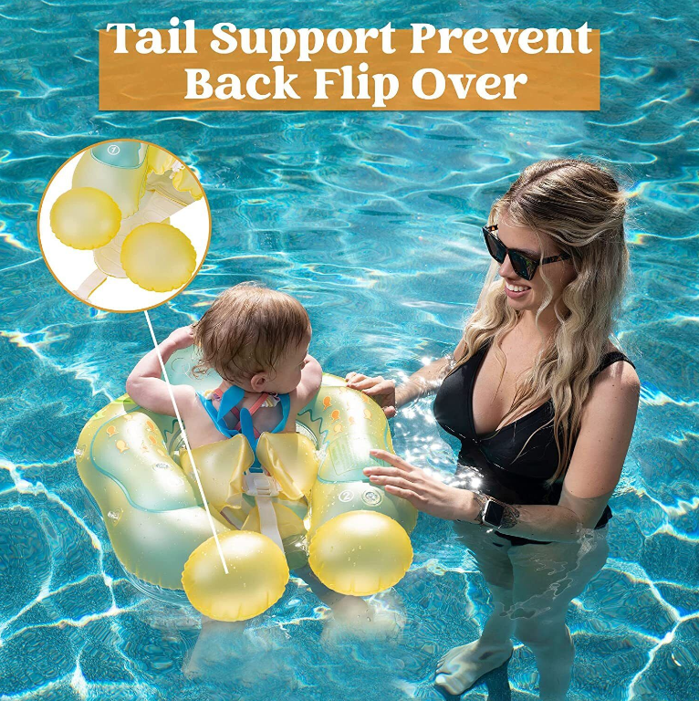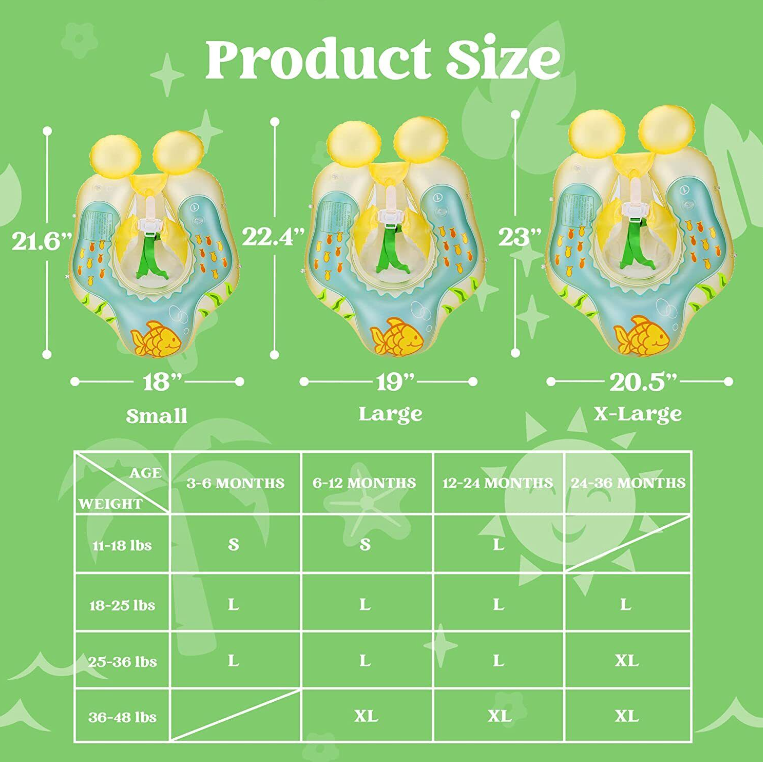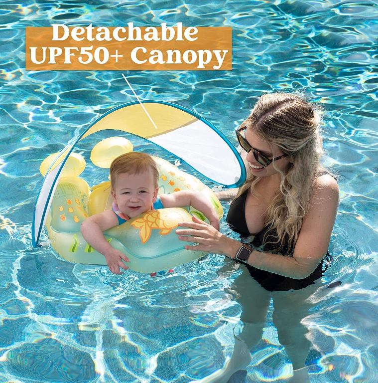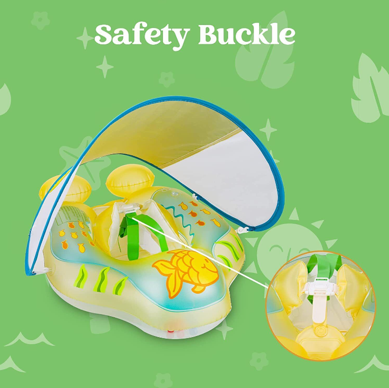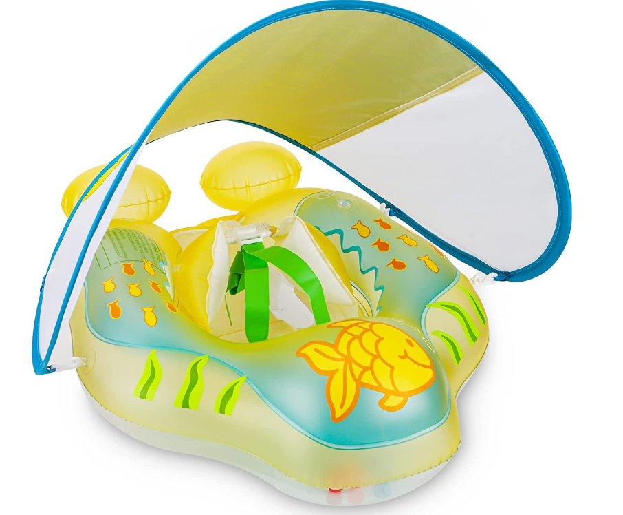 Sloosh Goldfish Pattern Inflatable Baby Swimming Float Detachable Sun Canopy L