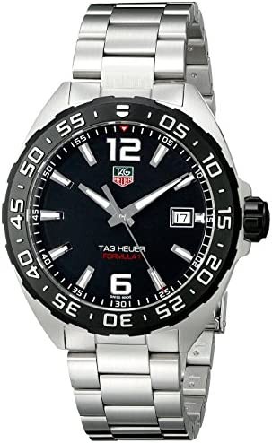Stainless steel case, stainless steel bracelet, black dial, quartz movement, scratch resistant sapphire, water resistant up to 20 ATM-200 meters-660 feet.