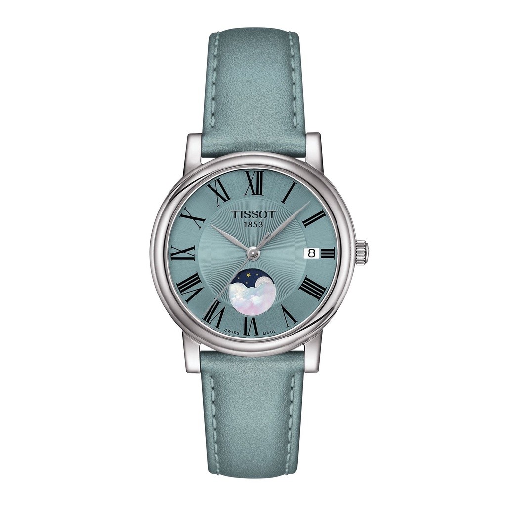 Tissot Carson Premium Lady Moonphase ทิสโซต์ คาร์สัน พรีเมี่ยม เลดี้ T1222231635300 สีฟ้า นาฬิกาผู้หญิง