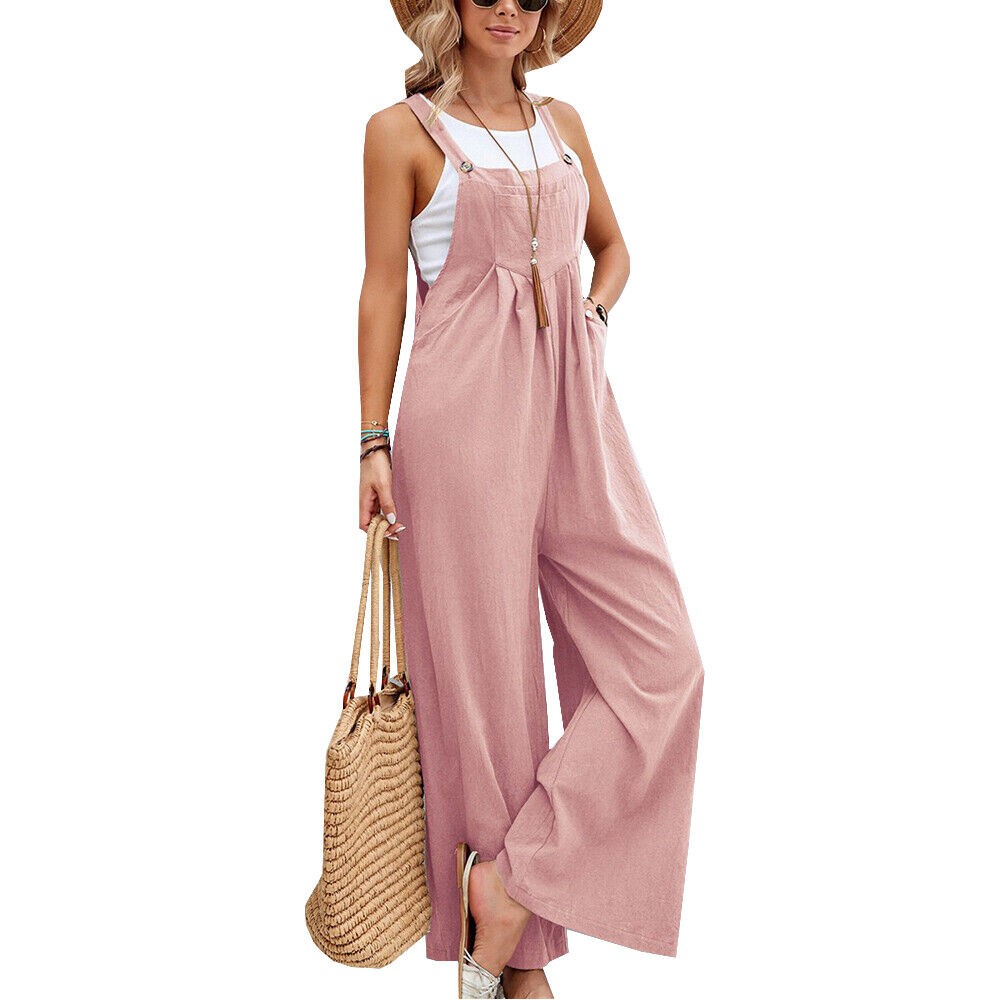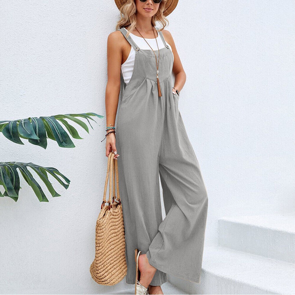 Women's Bib Overalls Sleeveless Loose Wide Leg Jumpsuits Rompers with Pockets