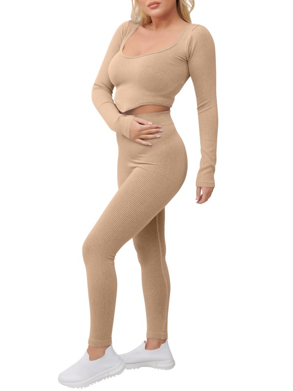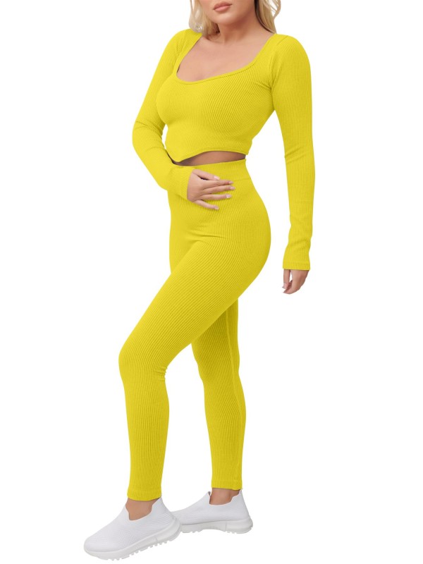 Womens Plain Ribbed High Waist Seamless Stretch Tracksuit 2 Piece Ladies Gym Set